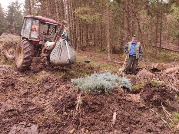 V rámci jarnej sezóny zalesňovania sme sa sústredili vo väčšine na lokalitu Čierny Potok (dielce 247, 248b). V jarnom období sme zalesňovali aj v lokalite Pod Ikričárka (dielce 471a, 472). Počas jesennej sezóny zalesňovania sme sa sústredili na menších plochách a to konkrétne v lokalitách: Pod Zraz (dielec 489), Strundžiská (dielec 180b), Veterník (dielec 485), Spálená (dielec 249a), Pod Skorušina (dielec 482b) a Zábiedovčík (dielec 428). Materiál na zalesňovanie odoberáme od škôlkárskeho strediska na Oravskej Priehrade (Lesy SR). Sadenice vypestované na Oravskej Priehrade spĺňajú podmienky vertikálneho prenosu (t. j. sadenice sa používajú na nové zalesňovanie na území s tým istým lesným vegetačným stupňom alebo o stupeň vyšším, ako je výškový pôvod lesného reprodukčného materiálu (zdroj semien)). O podmienkach použitia lesného reprodukčného materiálu hovorí vyhláška č. 510/2010 Z. z. Pri obnove lesných porastov aktuálne postupujeme podľa predpisov PSL (Program starostlivosti o les). V našich lesoch vysádzame zmes drevín ako buk, jedľa, smrek, smrekovec a javor. Práve zmiešané lesy sú v našich podmienkach najstabilnejšie, čiže najlepšie odolávajú nebezpečným javom ako napr. vetrové vývraty a polomy, premnoženie hmyzích škodcov, a podobne.